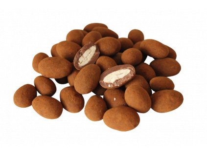 Zmes pražených jadier mandlí v horkej čokoláde a v bielej čokoláde...