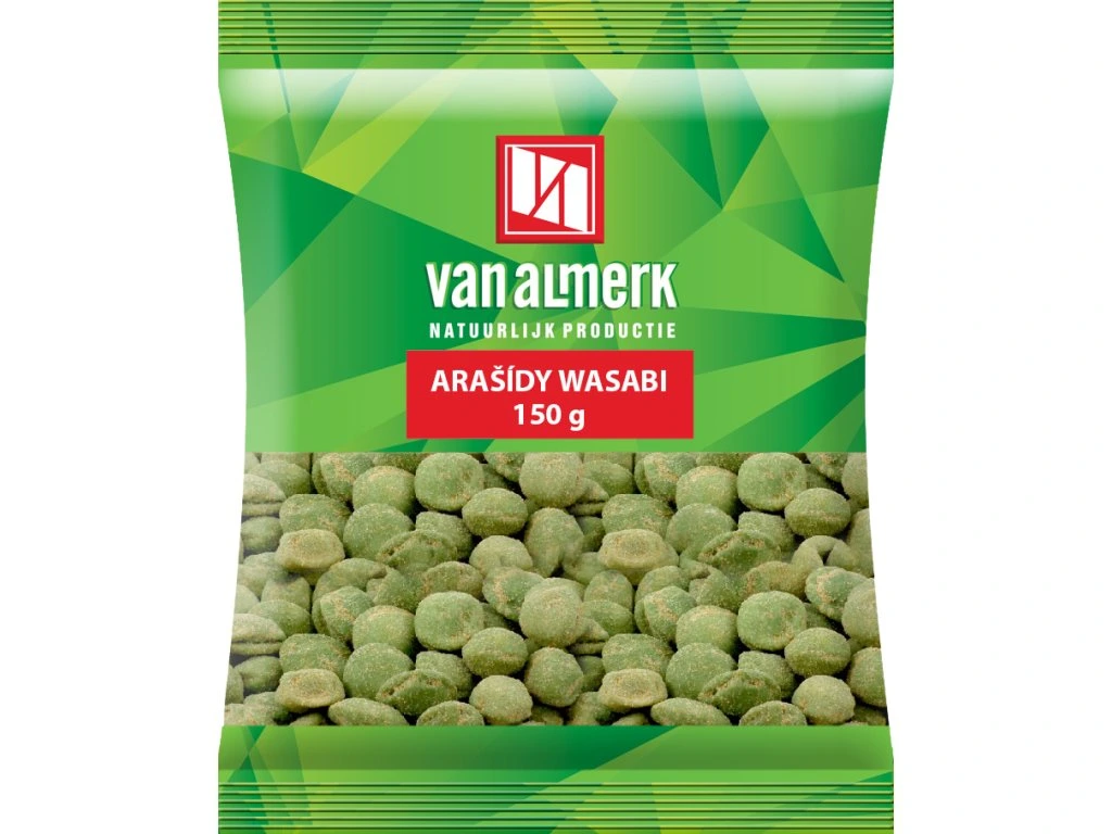 Zloženie: arašidy lúpané pražené 28 %, pšeničná múka, cukor, kukuričný škrob, kukuričná múka, kokosový olej, soľ, prášok zo sójovej omáčky, korenie, kypriaca látka E500, zemiakový škrob, regulátor kyslosti E330, farbivo E141, wasabi 0,003 %.